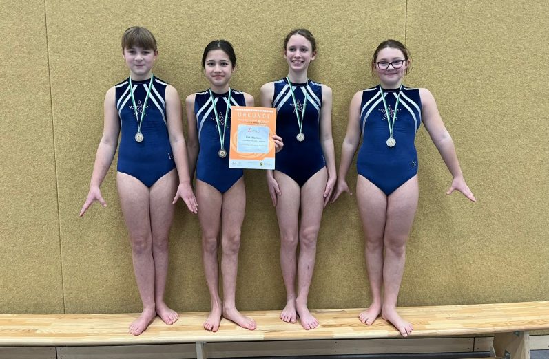 Die Mannschaft der AK 7 und jünger, bestehend aus Lysann Mark, Klara Malischewski, Lieselotte Lenk, Sophia Hauschild und Ella Hamori verpassten, mit einem hauchdünnen Abstand von nur 0,05 Punkten den ersten Platz und sicherten sich damit mit 146,35 Punkten einen tollen 2. Platz von insgesamt 7 Mannschaften.